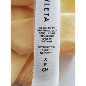 Athleta Getaway Tee TShirt Pale Yellow Ruched Cap Sleeve Women Size S