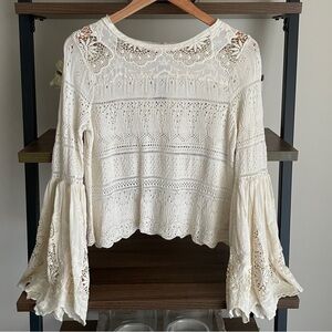 Free People Cream Crocheted Lace Bell Sleeve Top, Size XS Romantic Boho