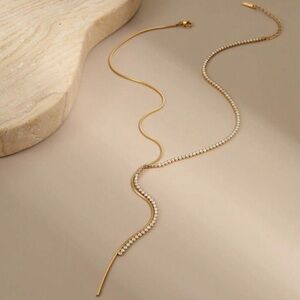 Elegant gold and silver lariat necklace. Perfect for any occasion. Stainless steel, 18K gold plated