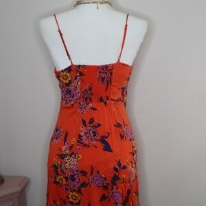 Free People Orange Floral Mini Dress | Flowy | Adjustable Straps | Size Small