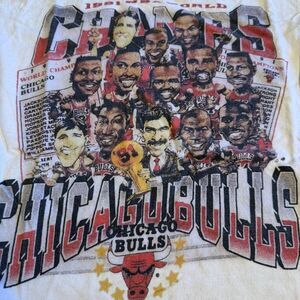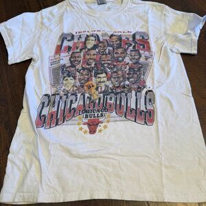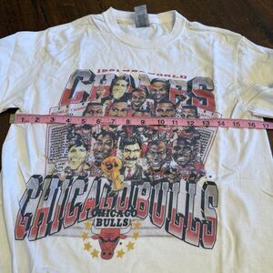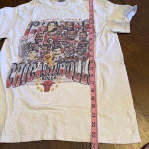Retro-inspired Chicago Bulls graphic tee featuring the iconic 1991 championship era artwork. This is a modern reprint / sublimation-style graphic, not an original 90s screen-printed vintage tee — perfect for everyday wear or casual street style. Men’s small - 17” pit to pit