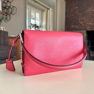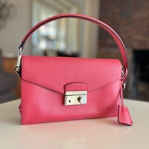 Prada shoulder bag • Prada pink bag • Prada Saffiano Lux • Prada crossbody bag • authentic Prada handbag • Prada purse • designer leather bag • Prada Italy • luxury pink handbag