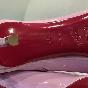 Elegant lilac boots with signature red soles. Sleek and stylish design.