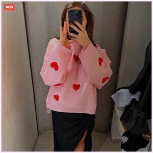 Brand new with tags and in flawless condition — this adorable heart print sweater delivers a cozy, cheerful look perfect for casual days, festive holidays, or adding a sparkly touch to your everyday wardrobe. The fit is relaxed, soft, and incredibly comfortable.