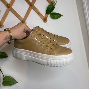 This platform sneaker features an air-lite bottom that provides soft cushiony steps everywhere you go. Has minor scuffs and marks throughout. Comes with the box.