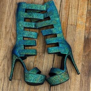 ALEJANDRA BEYAZ Womens black Studded Gladiator Stiletto High Heel Sandal wore once to a dancing class.