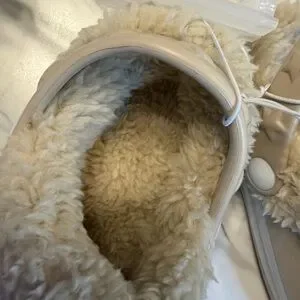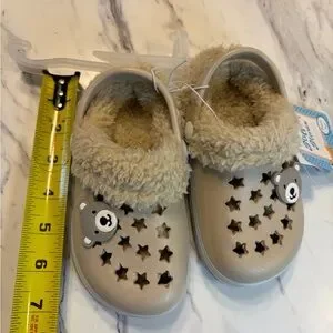 Tan color cozy kids shoes feature a charming bear design and star cutouts. Croc's style slippers with Teddy warm cover inside.