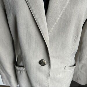 Chic cream blazer by Calvin Klein. Tailored fit with a single button closure. Ideal for professional and casual settings.