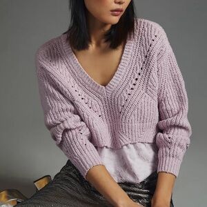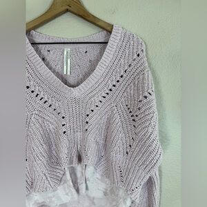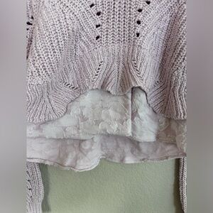 By Anthropologie Lavender Lilac Purple Layered Cable Knit Sweater with Lace bottom size Large