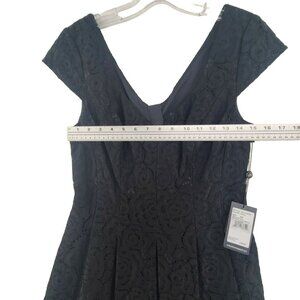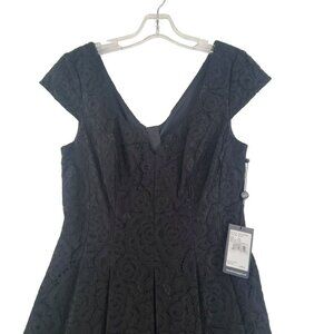 Adrianna Papell NWT Julie Lace Fit and Flaire Cap Sleeve Midi Dress Black Size 8