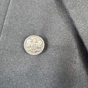Keywords: western blazer, double breasted, tailored jacket, menswear, formal, smart casual, statement piece, button up, cropped jacket, embossed buttons, western wear, suit jacket