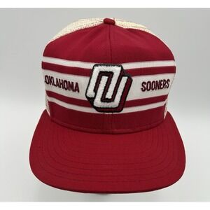 Vintage 80s Oklahoma Sooners NCAA College Red Snapback Hat AJD SuperStripe