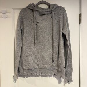 AQUA Gray Distressed 100% Cashmere Hooded Sweater Women's Size L Hoodie