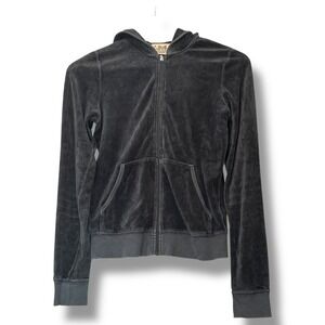 Vintage Juicy Couture Velour Hoodie Medium Grey House of Juicy Graphic Y2K