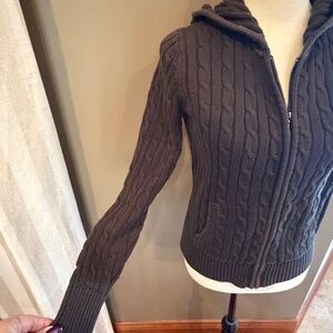Ann Taylor Chocolate Brown Hooded Full Zip Cable Knit Sweater, Size Small