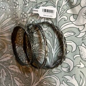 Features: Set of 3, hammered metal bangles, studded accents