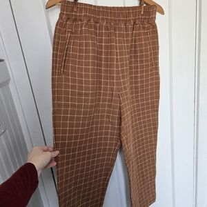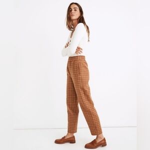 Madewell Waffleback Pull-On High-Rise Tapered Pants Windowpane Brown Size S