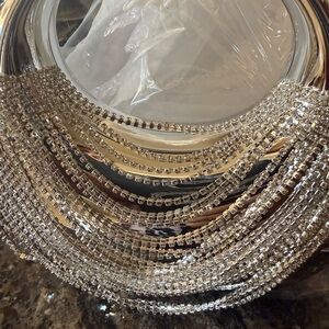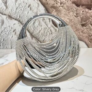 Shimmering silver handbag adorned with sparkling rhinestones. Perfect for adding a touch of glamour to any outfit.