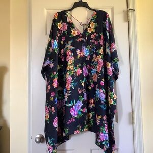 Johnny Was Sognatore Nero High Low Silk Blend Kaftan Black Floral Multi SZ L/XL