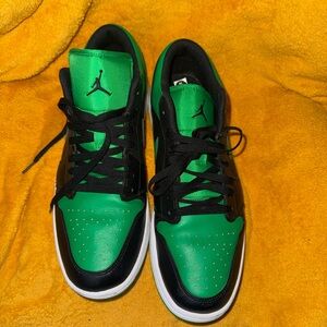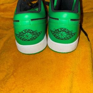 Stylish green and black Air Jordan sneakers. Perfect for casual wear.