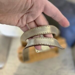 Material: Wicker (rattan, straw) main body with metallic gold leather accents