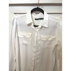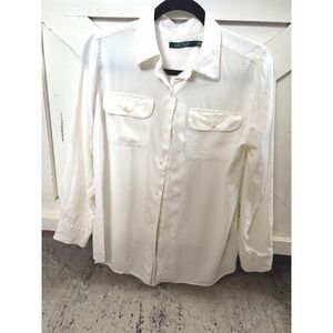 LAUREN Ralph Lauren Women's Creamy White Viscose Long Sleeve Button Down Blouse