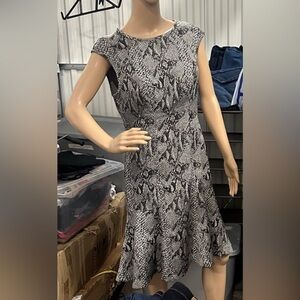 Ann Taylor Gray and Black Snake Print short sleeve Midi Dress size 8