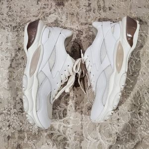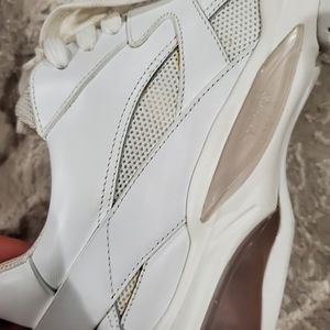 EU 40 Includes box, care card, and spare laces. I got these on sale because there are some yellow stains on parts of the shoes. I tried to take as many close up pictures but let me know if you want more. I believe they can be removed but I haven't tried. Selling AS-IS! The stains aren't super visible when you have them on, I'm scrutinizing a lot for transperancy. Outsoles show a bit of gray from being tried on in apparently slightly dirty Neiman floors 🤷. Overall super cool and comfy. 11 in.