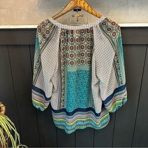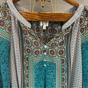 Anthropologie Fig & Flower Blouse Peasant Boho Tunic Top Semi Sheer Size XL