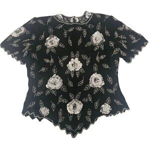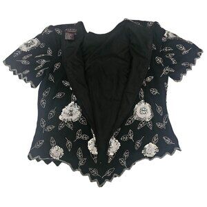 Marina By Marina Bresler Vintage Sequined & Beaded Scalloped Edge Blouse Medium