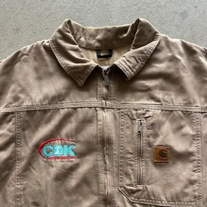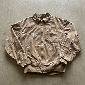 Vintage Carhartt Jacket Size XL Tan Full Zip Bomber Coat Canvas Workwear J163