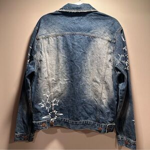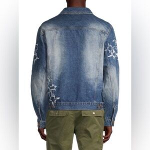 Billionaire Boys Club Button Up Denim Jacket Stars Faded Wash Distressed Collar