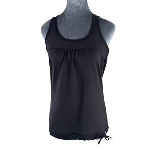 Athleta Blk Racerback Workout Tank Top Drawstring Waist Built In Bra Athletic S