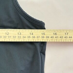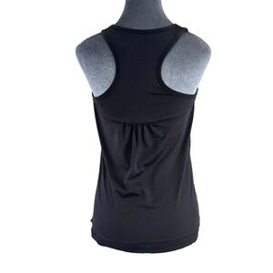 Keywords: Athleta tank, racerback, workout top, athletic wear, activewear, drawstring hem, gathered detail, sporty, fitness, casual top, athleisure, performance wear, black tank