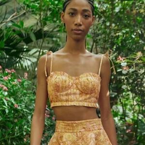 AGUA BY AGUA BENDITA Moringa pleated floral-print cotton bra top NWT XL