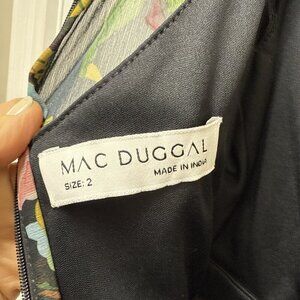 Mac Duggal Size 2 Black Floral 9149 Illusion Cap Sleeve Midi Cocktail Dress New