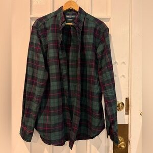 Ralph Lauren Men's Dark Green and Red Plaid Shirt
