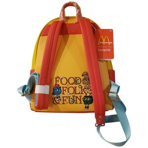 Brand New with Tags! McDonald and Loungefly come together to make this playful backpack featuring bright, detailed old school McDonald's Characters. 3 Zip Pockets. Adjustable straps. Side pockets. This is not only an awesome backpack, but a collectors item!