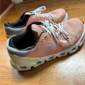 On Cloud Women's Pink and White Athletic Shoes