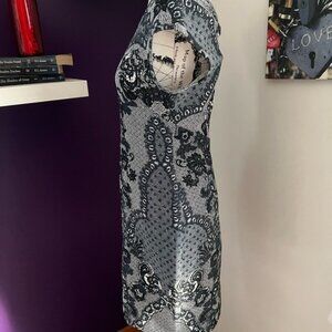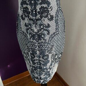 Great navy and white pattern!! No marks or snags. Worn 4-5 times to work and dinner. Great for any evening or day out.