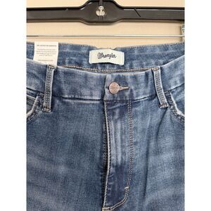 Elevate your denim game with these New With Tags Wrangler Bespoke Flare jeans. Designed specifically to compliment curves, the Bespoke line features a high-rise fit and a "no-gap" waistband that moves with you. These have a beautiful medium-wash finish with light whiskering for a lived-in, vintage look.