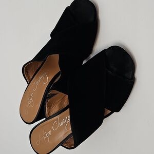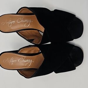 Arturo Chiang Black Suede Criss Cross Mule Block Heel Sandal Whimsigoth Feminine