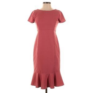 Paper Crown Anthro Maternity Sheath Ruffle Hem Midi Dress in Dusty Rose Pink M