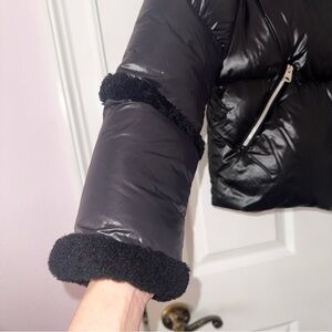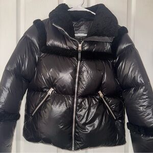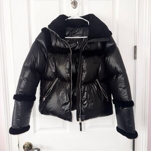 Mackage Montreal Miya black puffer jacket Shearling trim collar Small