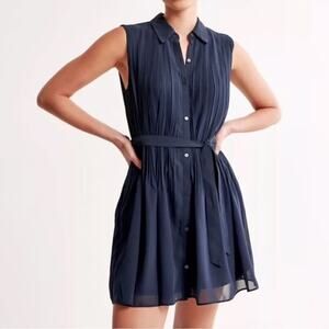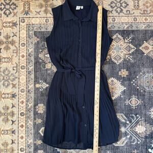 Joie Navy Blue Pleated Button Down Sleeveless Belted Mini Dress Women’s Medium