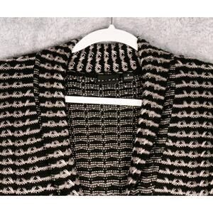 Tribal Cardigan Sweater Womens Medium Black Gray Chunky Knit Boho Wool Blend