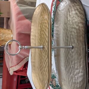 Tiered Tray Two Tone Gold Textured Glass 2 Plate Southern Living Home Vtg Rare