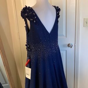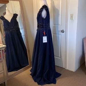 Stunning midnight blue maxi dress. Features elegant embellishments. Ideal for special events.NWT from non-smoking, pet free home.