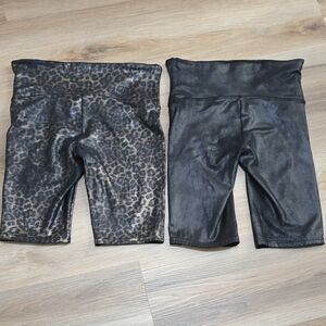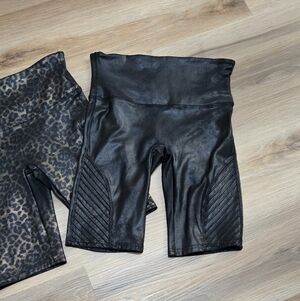 Spanx 2 Pair Black and Leopard Faux Leather Biker Shorts