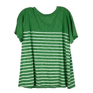 Maurices 24/7 Dawson T-Shirt Women’s L Green White Stripe Crew Neck Drop Shoulder